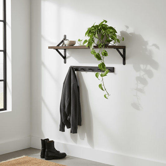 Étagères Murales Flottantes en Bois Naturel avec Équerres Métalliques Noires – Rangement Décoratif et Moderne pour Salon, Bureau ou Cuisine