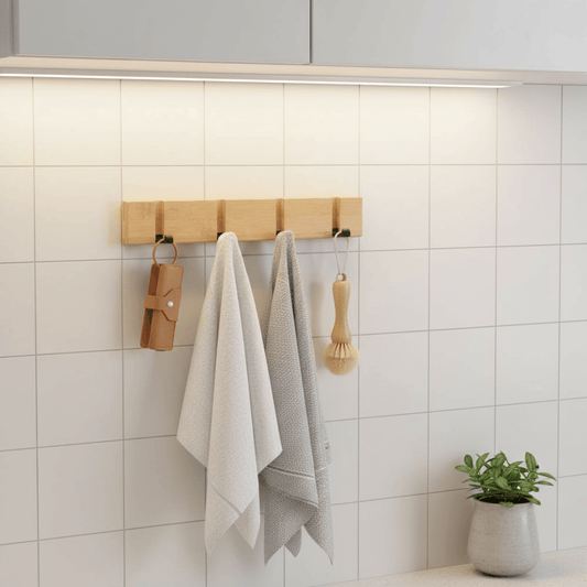 Patère Murale Style Nordique en Bambou - Système de Rangement Élégant